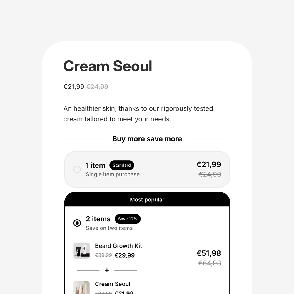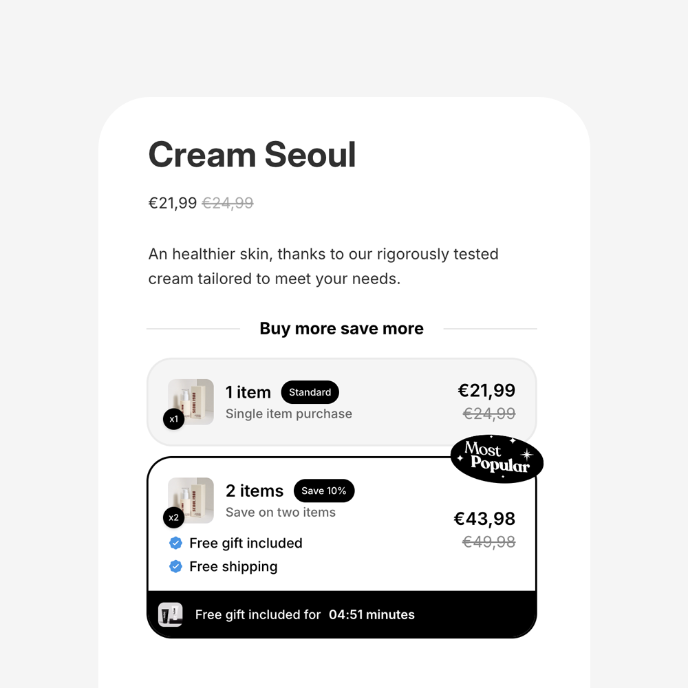 Everything you need to sell more with high-converting bundles, cart drawer offers, and post-purchase upsells.